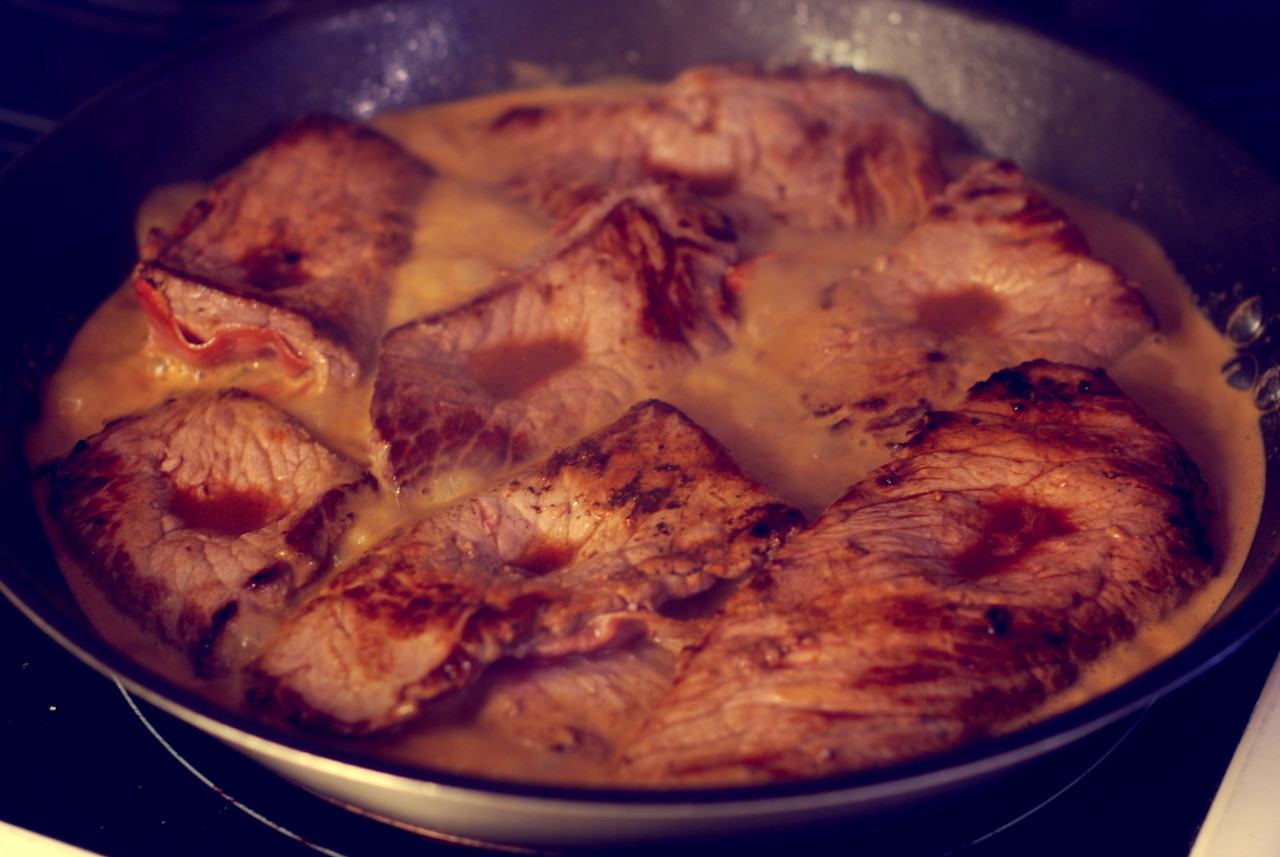 Veal stuffed with proscuitto and herbs, cooked in a sauce of Danish butter and Italian marsala (sweet wine).
